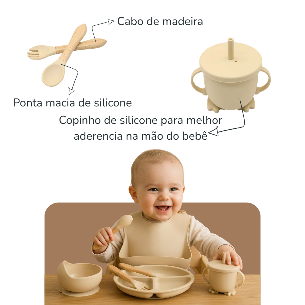 Um kit completo, pensado com carinho para acompanhar cada fase da introdução alimentar. 💛